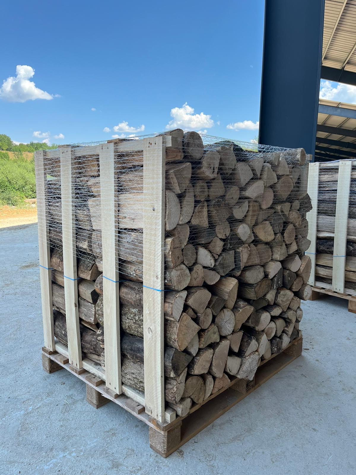 Bois de chauffage empilé sur palette. Bois dur (chêne, hêtre, frêne et charme) pour une combustion lente et un excellent rendement. Idéal pour poêle, insert ou cheminée. Disponible en plusieurs longueurs de bûches (25, 30, 33, 40 et 50 cm)